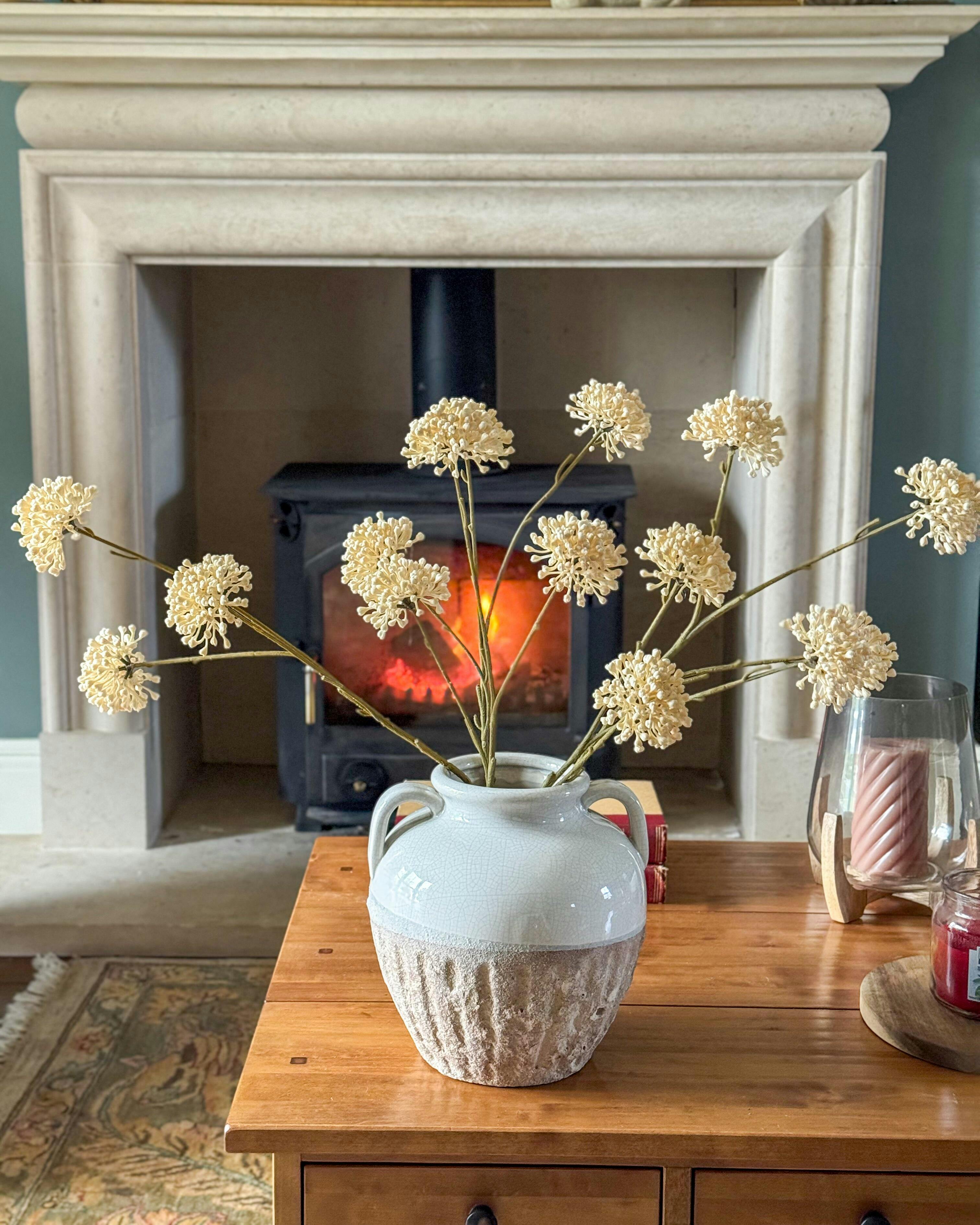The Cream Allium Spray is a realistic, versatile faux floral accent that adds natural beauty and texture to any space. Its soft, creamy blooms and flexible stems make it easy to style. An elegant, low-maintenance addition to elevate your decor.