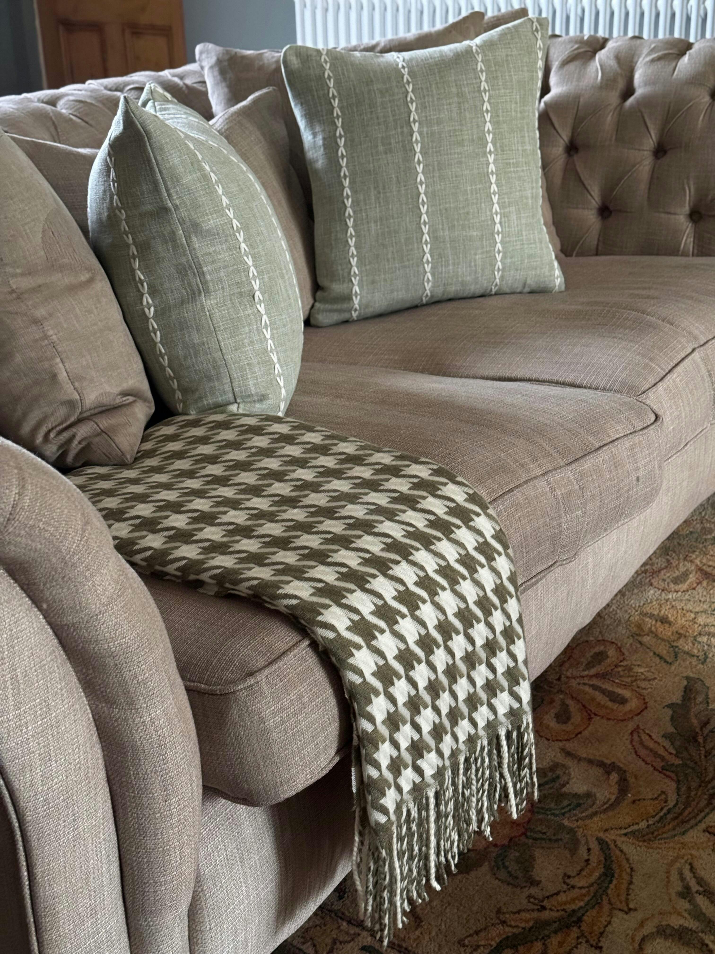 Olive Green Houndstooth Blanket Throw