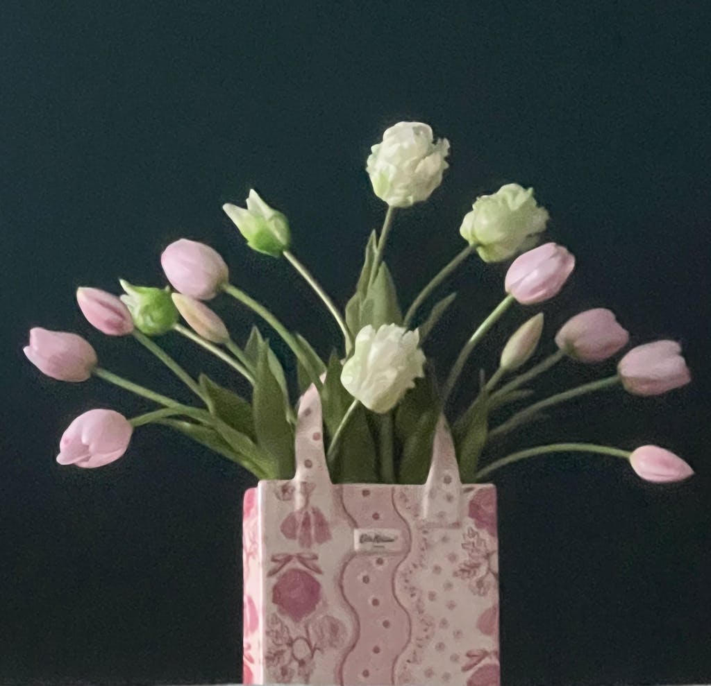 A vase 20-25cm tall works perfectly, allowing the tulips to display beautifully without overwhelming the arrangement.